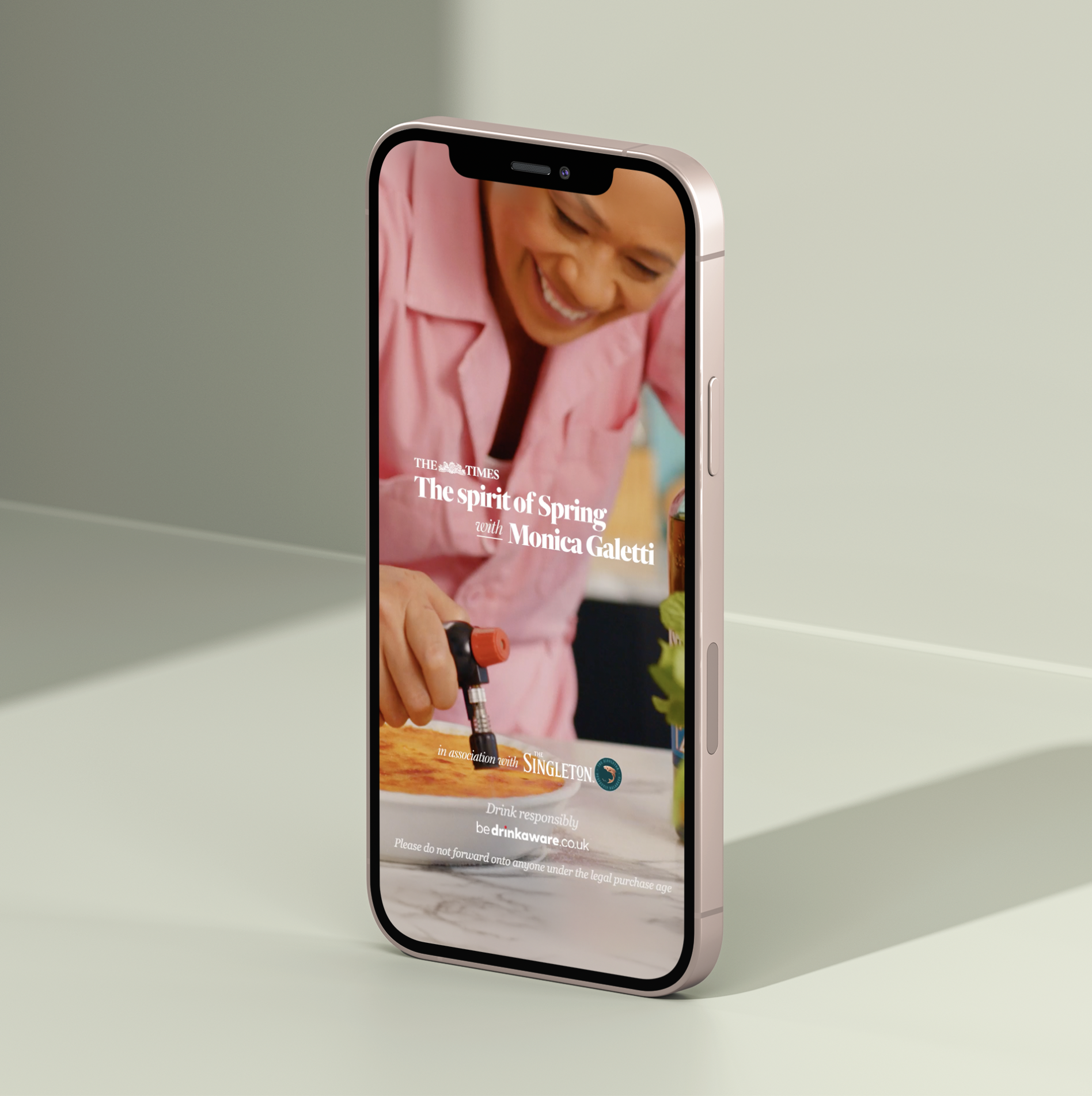 As art director on the project, I developed a campaign plan to deliver activity in two bursts across a wide range of media. I created the look and feel of the campaign, built around Monica’s seasonal recipes, focusing on winter and spring. The locations, props, styling and colour palette reflected the recipes, as well as incorporating The Singleton’s signature teal, and ensuring consistency across the campaign as a whole.